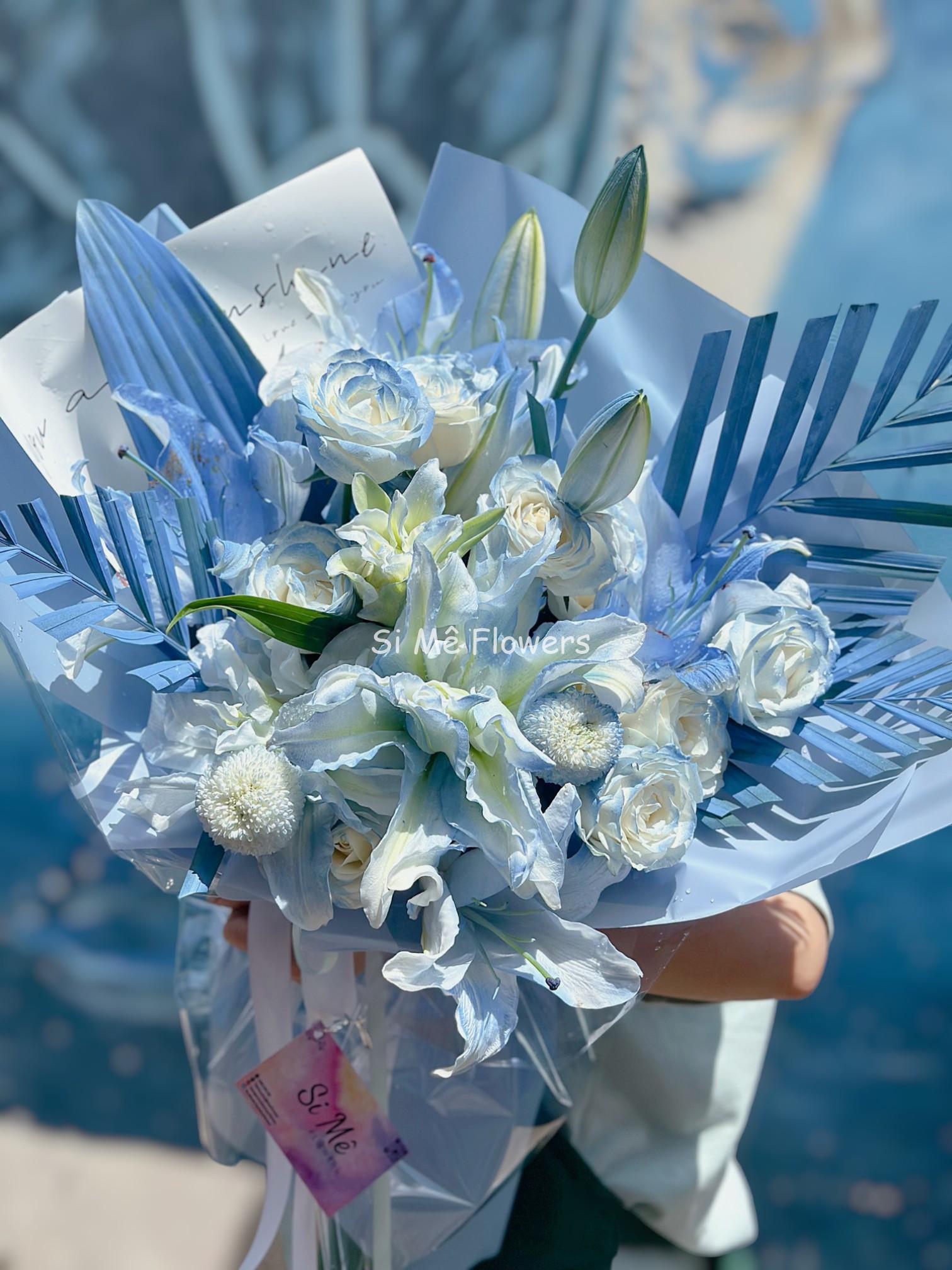 Bó Hoa Hồng Trắng Tulip Mao Lương Mix Tú Cầu – Thanh Khiết & Sang Trọng