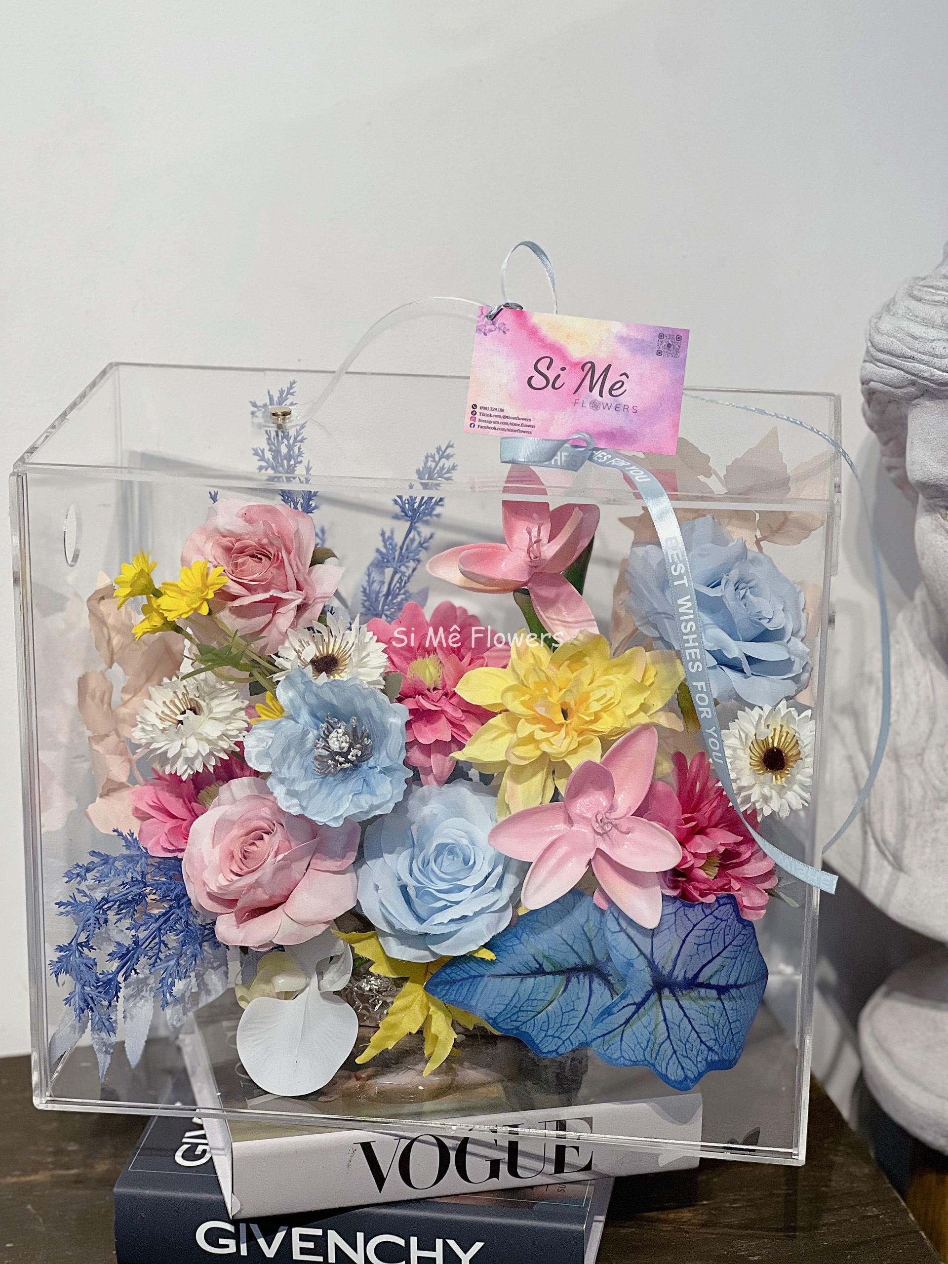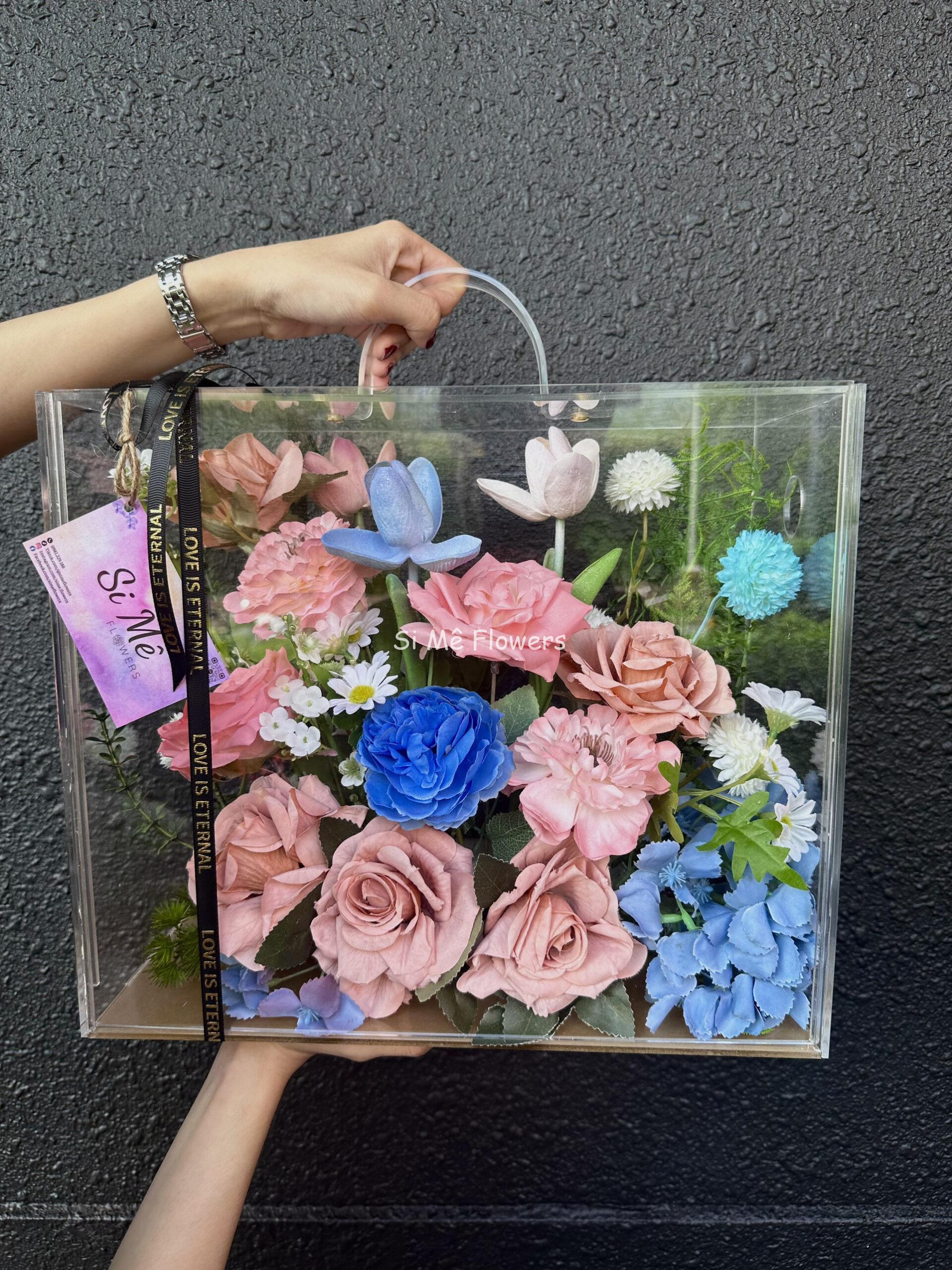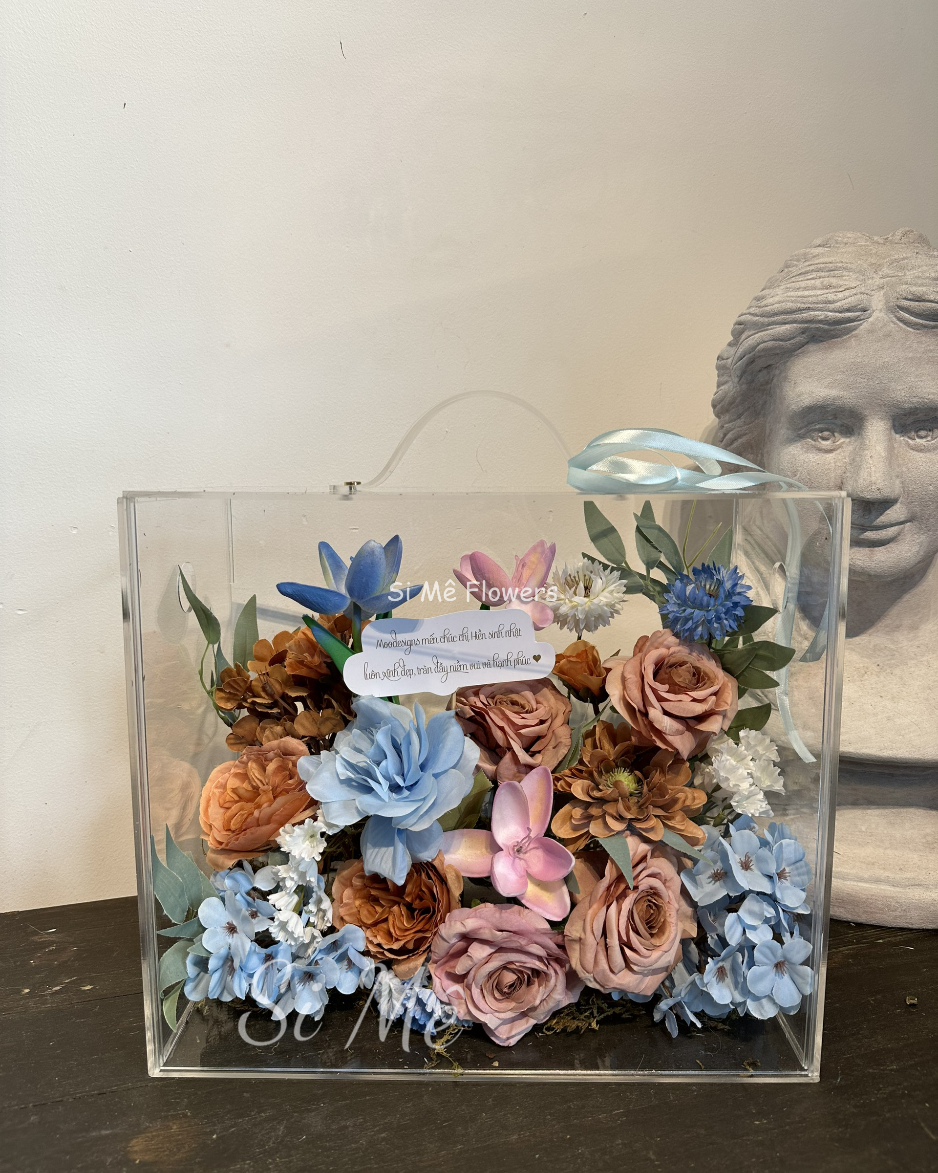 Box Hoa Khô Cao Cấp Mix Baby Three Chính Hãng Tone Xanh Dương