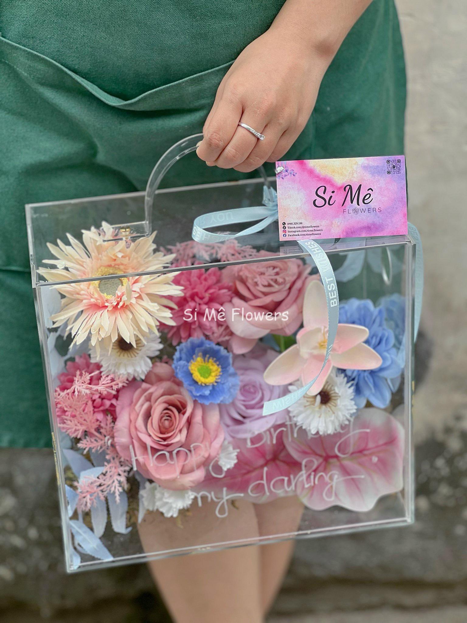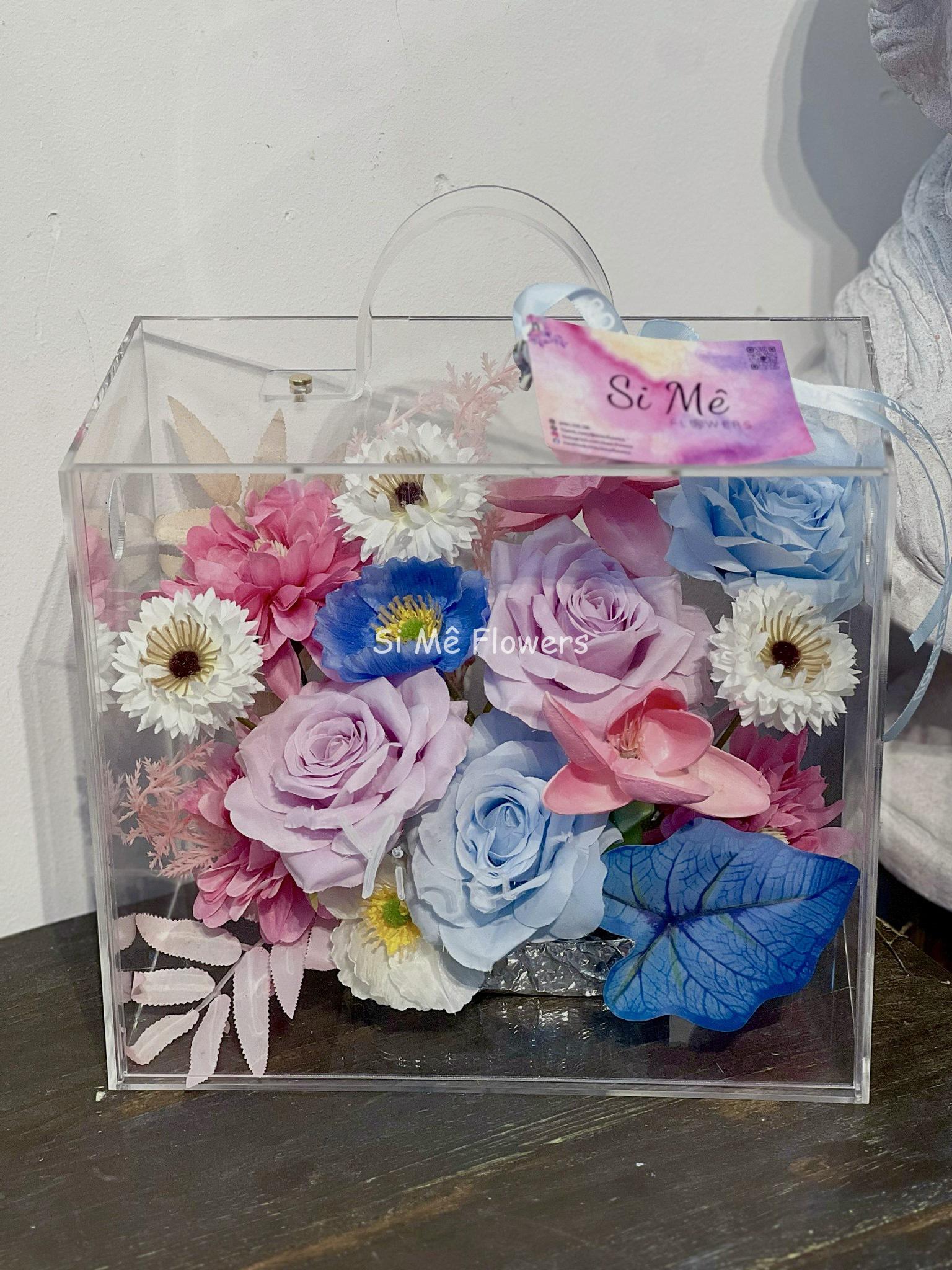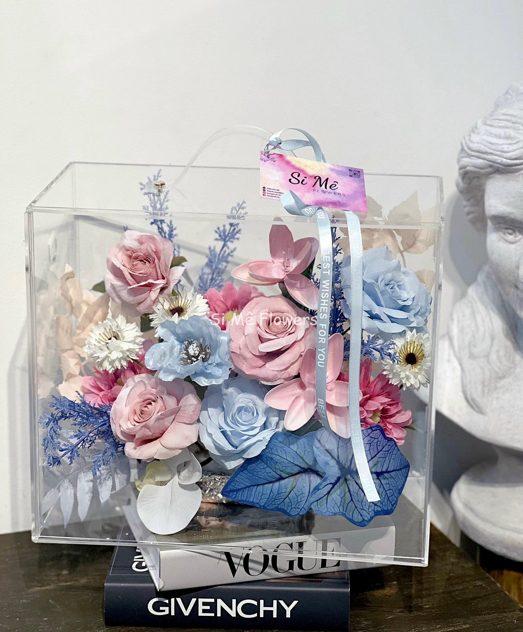 Box Hoa Khô Cao Cấp Mix Baby Three Chính Hãng Tone Xanh Dương