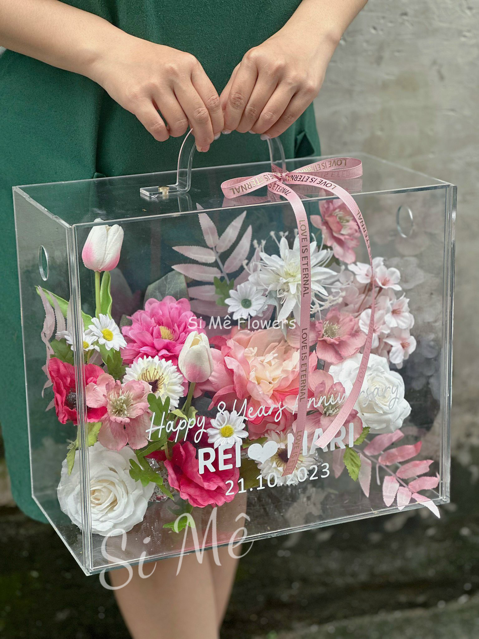 Box Hoa Khô Cao Cấp Mix Baby Three Chính Hãng Tone Đen Đỏ Trắng