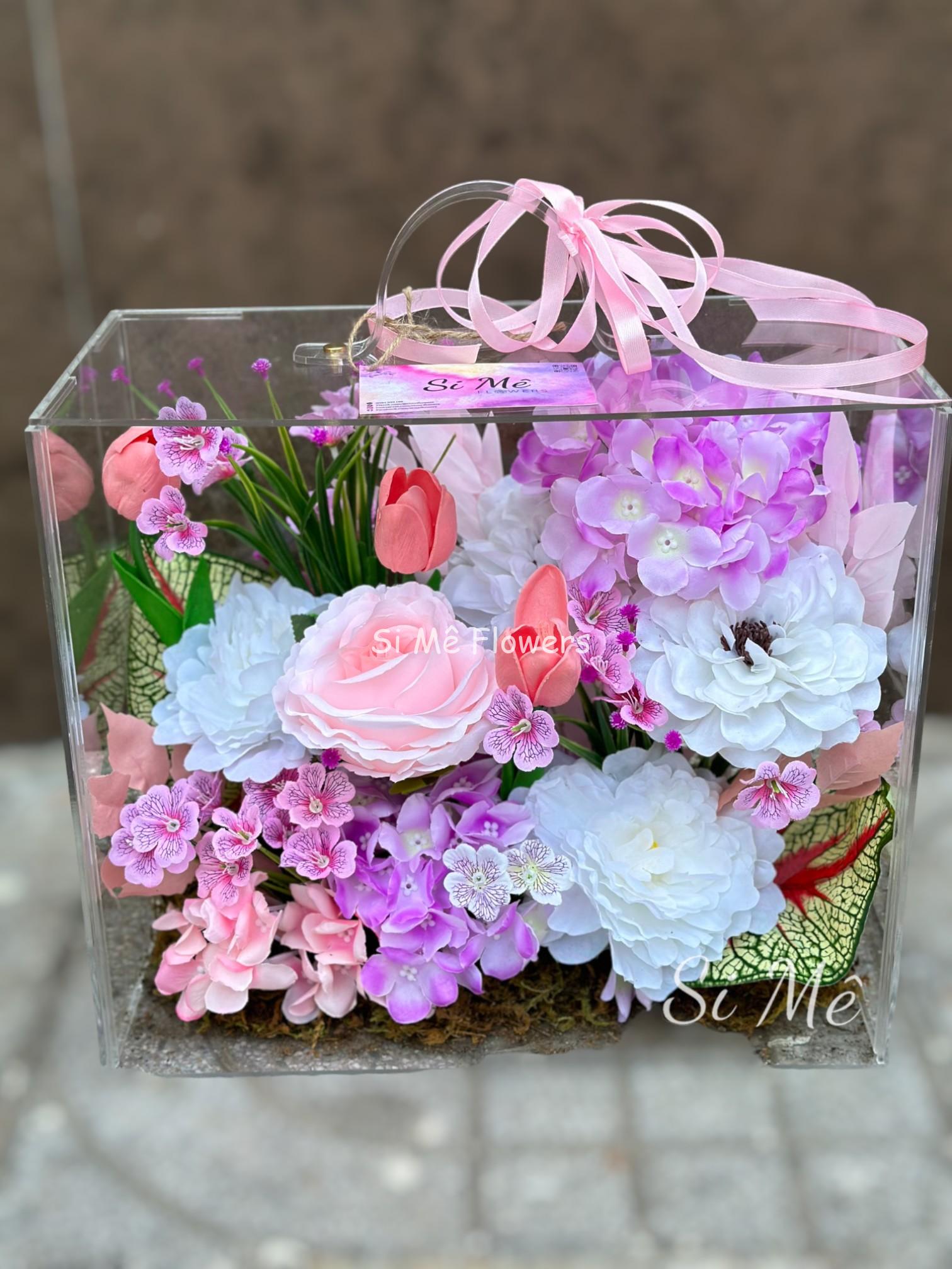 Bó Hoa Xòe Form To Tone Tím – Mao Lương, Tulip, Hồng Tím & Cẩm Tú Cầu