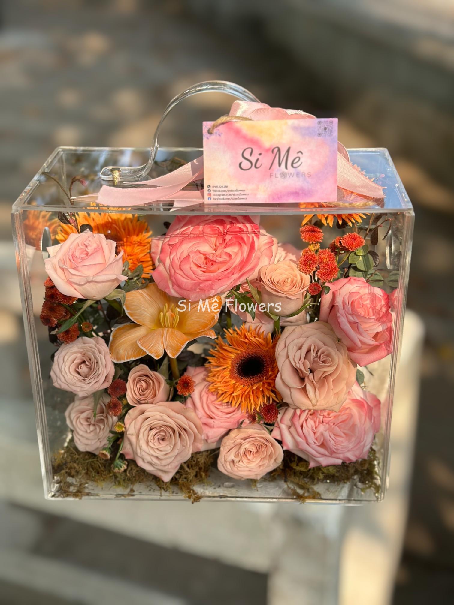 Box hoa tươi tone hồng cam