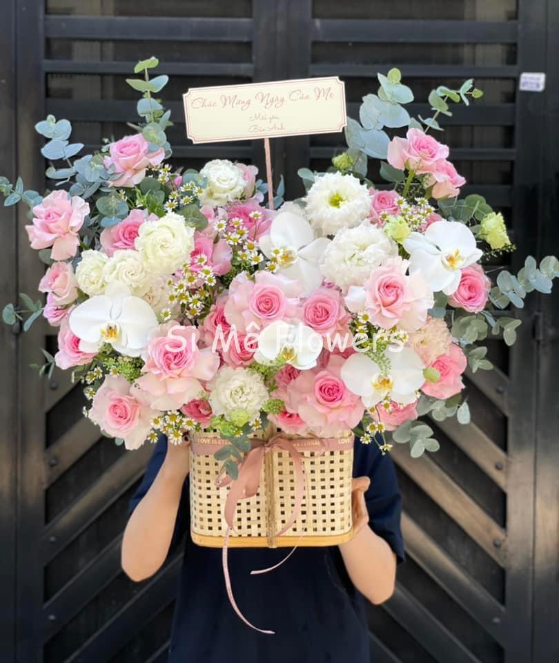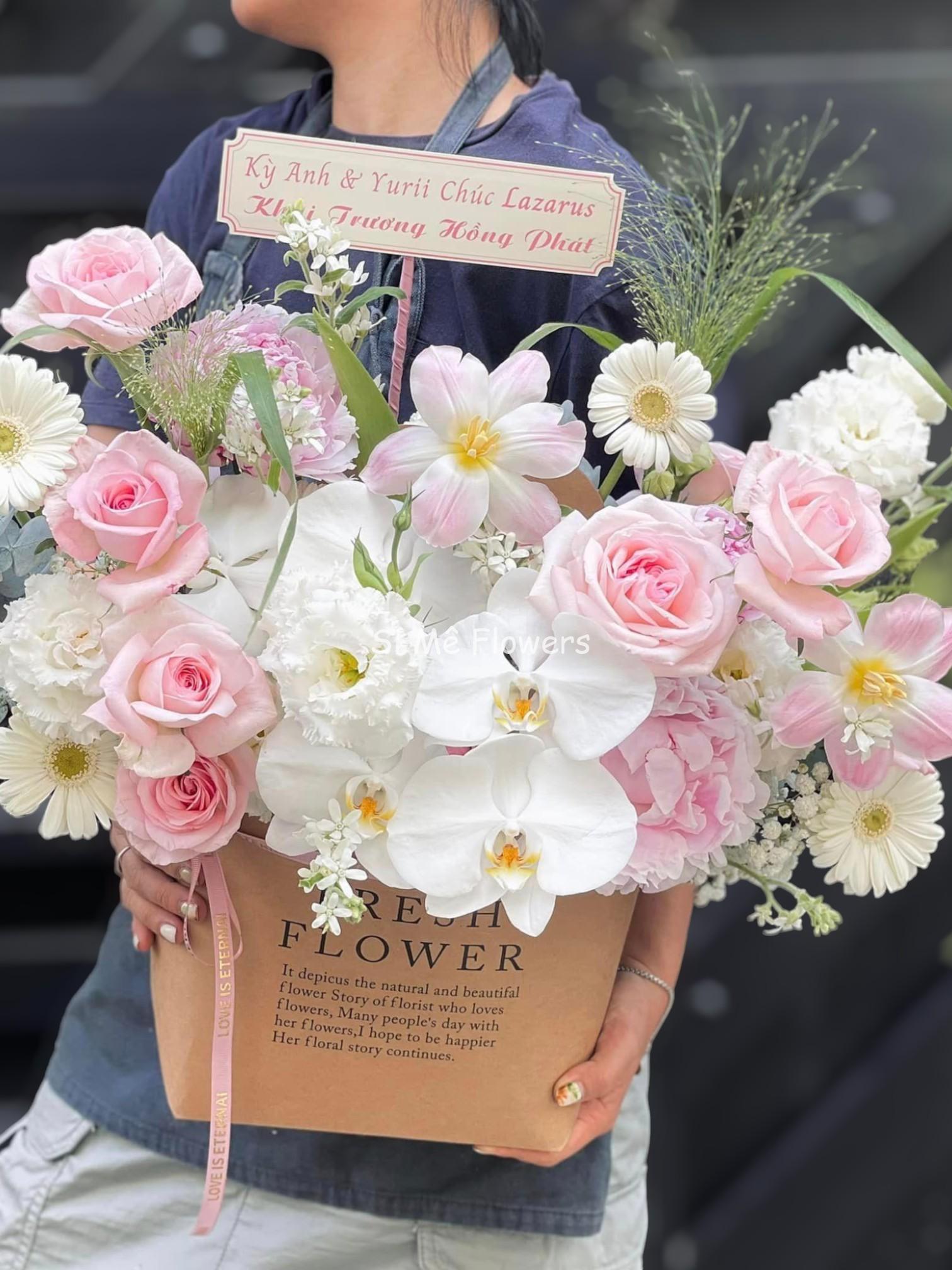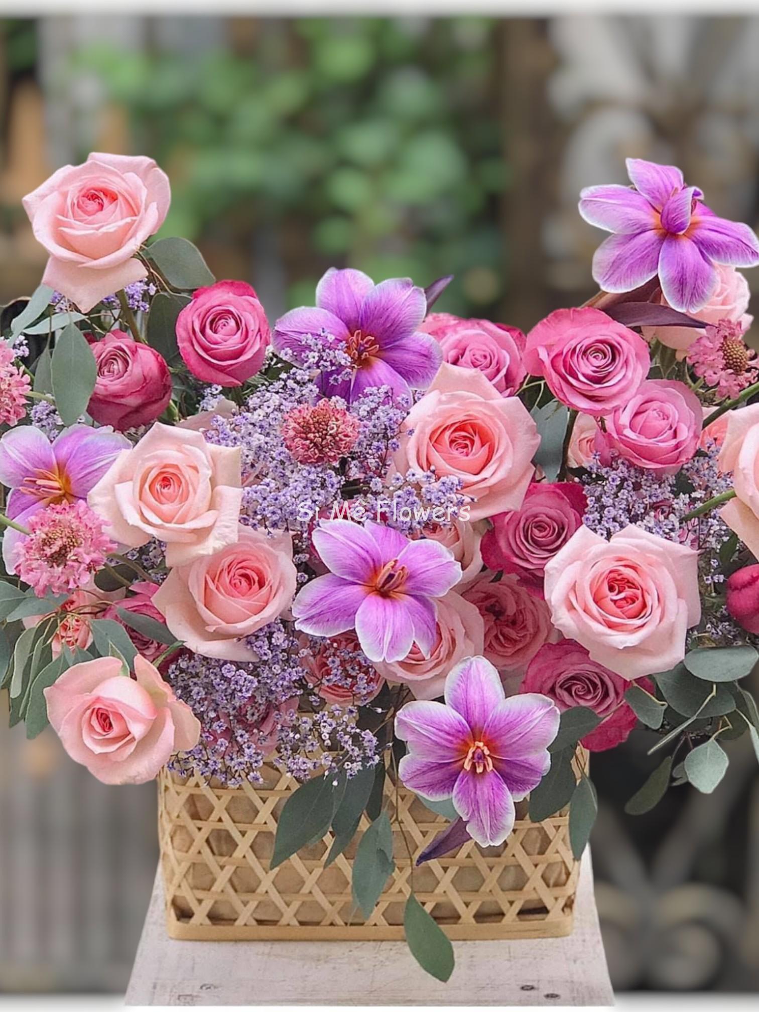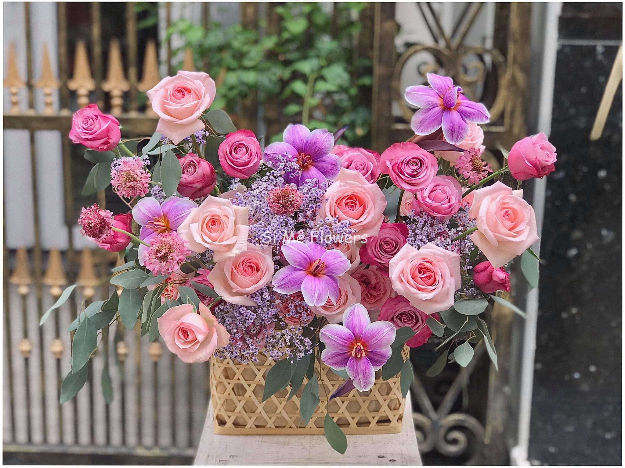 Bó Hoa Xòe Form To Tone Tím – Mao Lương, Tulip, Hồng Tím & Cẩm Tú Cầu