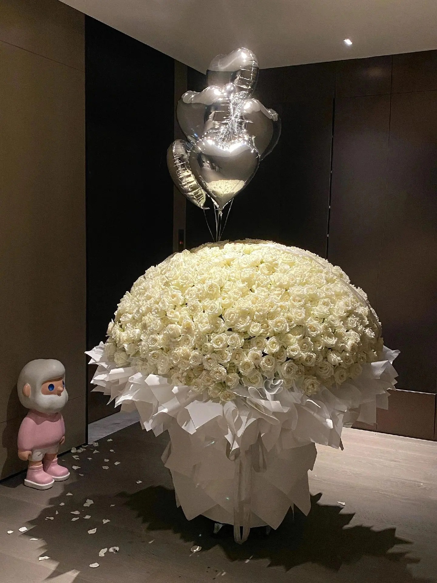 Bó hoa hồng trắng khổng lồ với hơn 1000 đóa tinh khôi – biểu tượng của tình yêu vĩnh cửu, đẳng cấp và sang trọng bậc nhất.