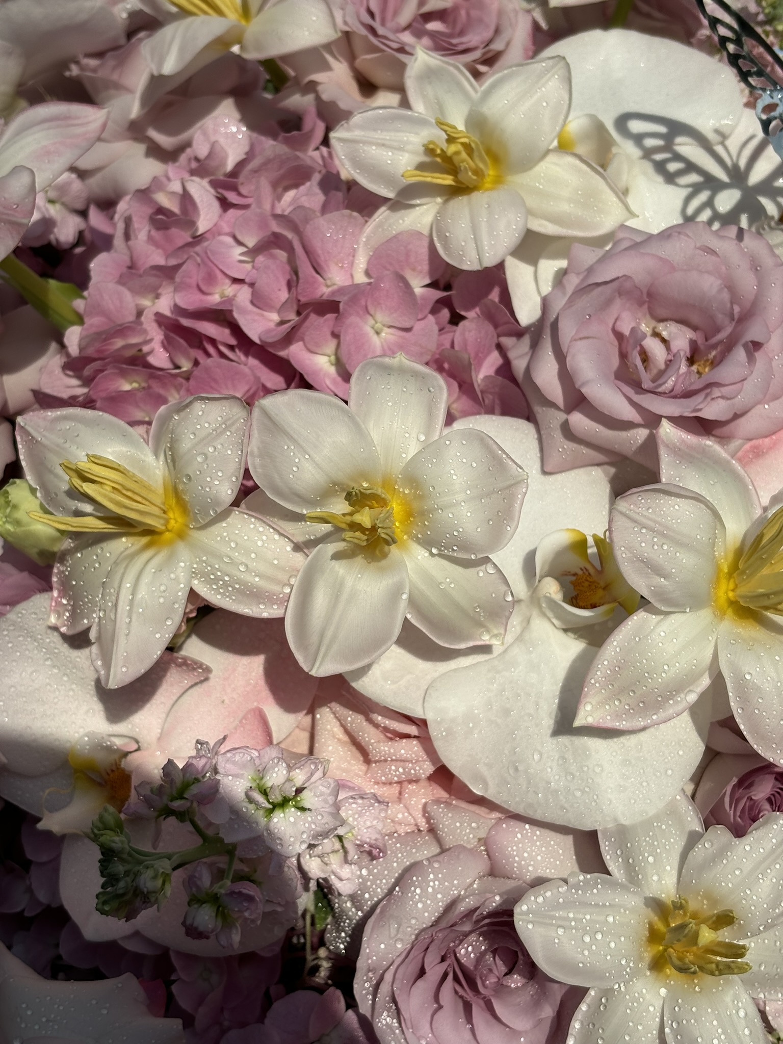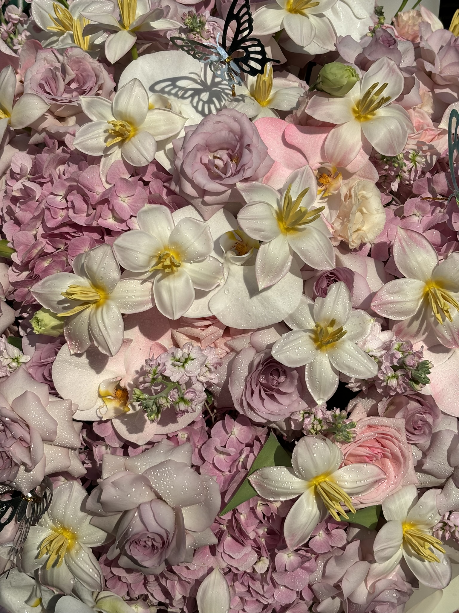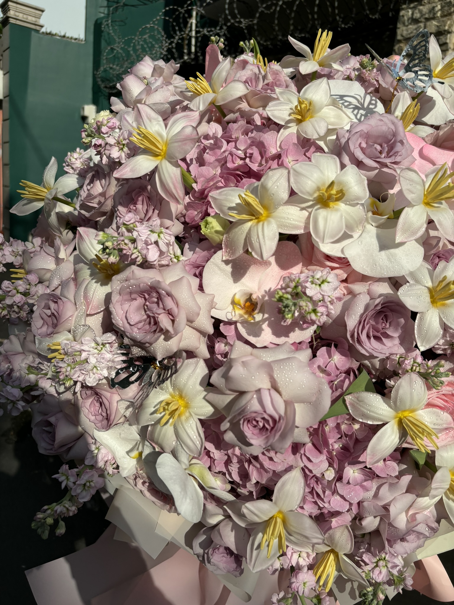 Bó hoa khổng lồ pastel với hồng Ohara, tulip, cẩm tú cầu và phi yến – kiệt tác nghệ thuật sang trọng, ngọt ngào và lãng mạn.
