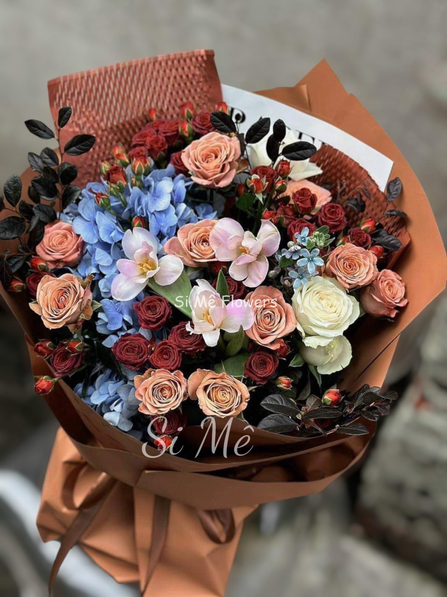 Review Bó Hoa Mix Nhập Khẩu Tone Cam Xanh