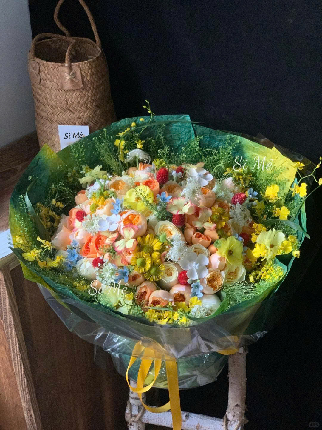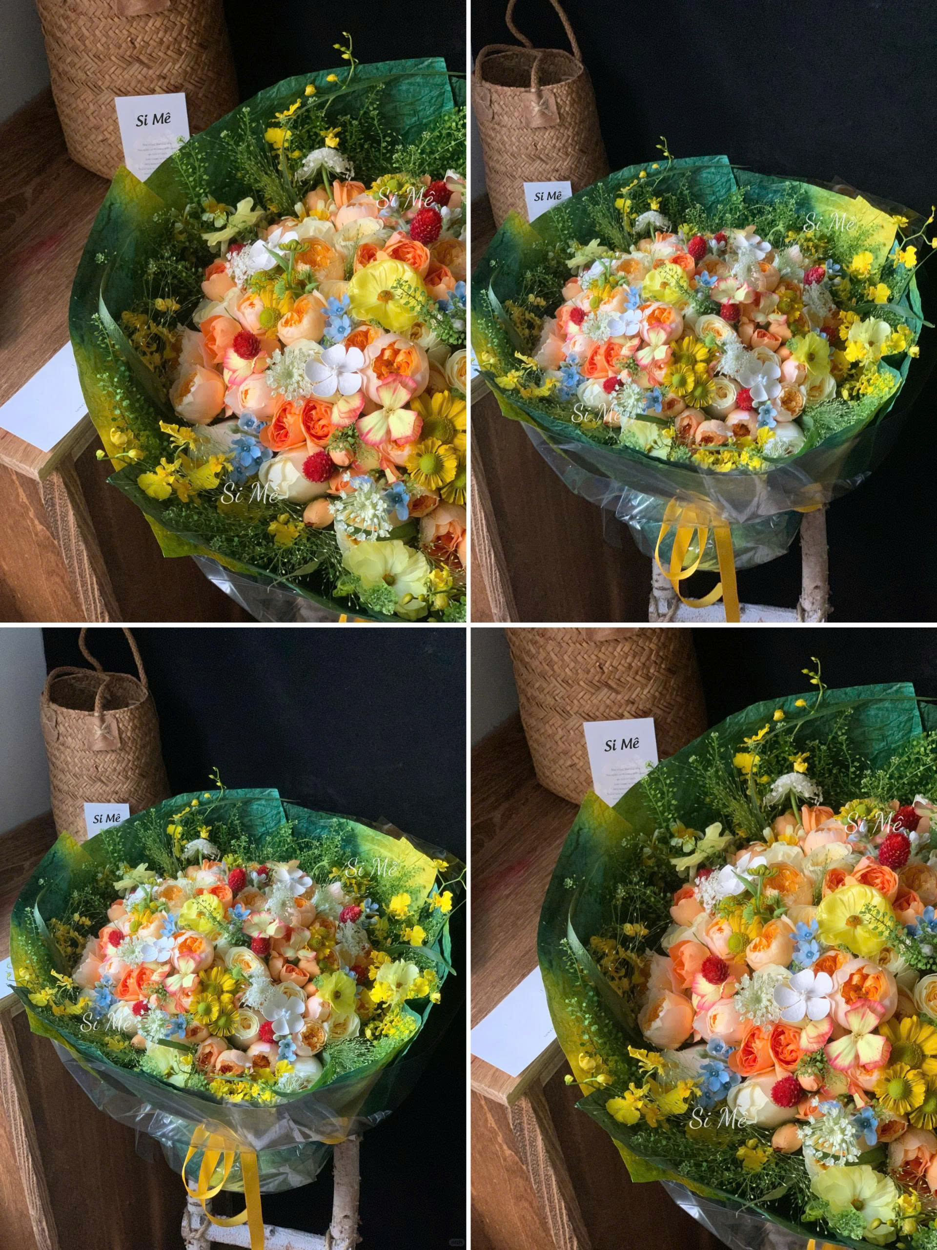 Review Bó Hoa Vàng Cam Pastel Phối Đỏ Xanh – Sắc Màu Năng Lượng & Dịu Dàng