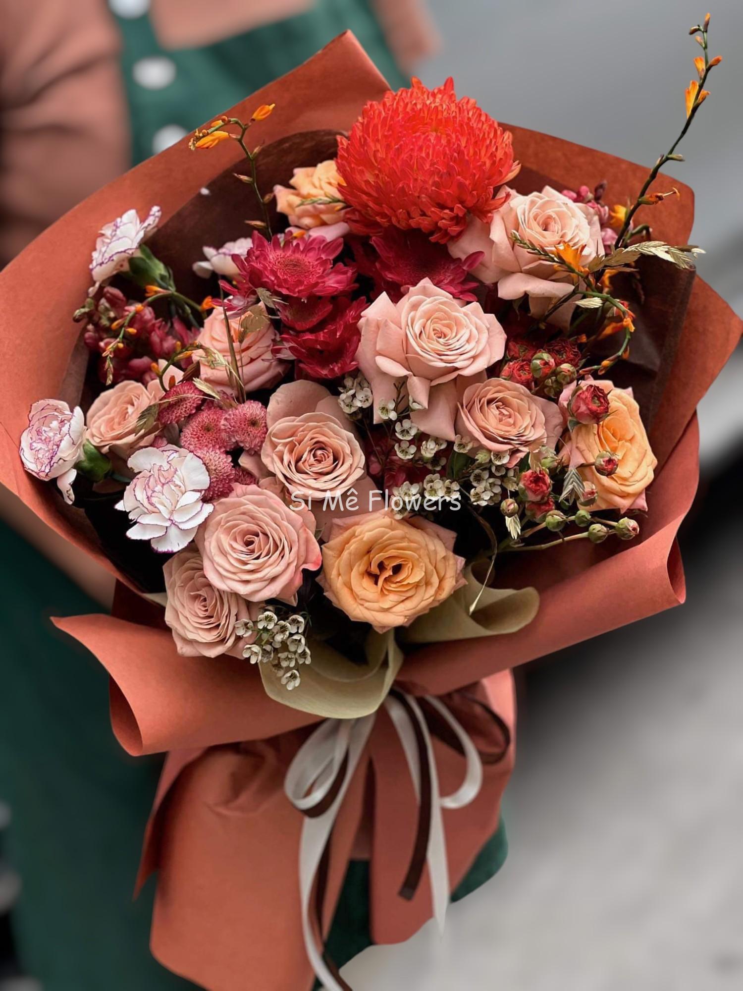Bó Hoa hồng Capuchino Mix Hồng Chùm
